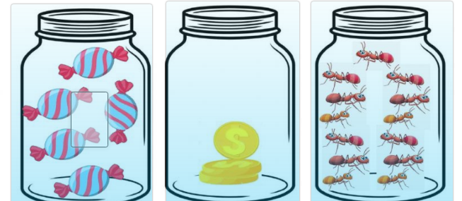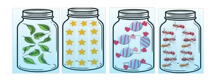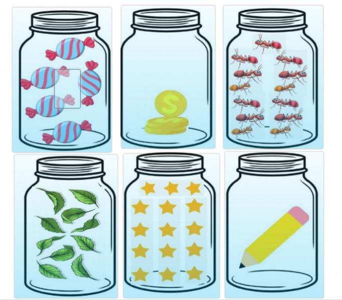 Observa la imagen y selecciona los frascos que tienen muchos objetos.