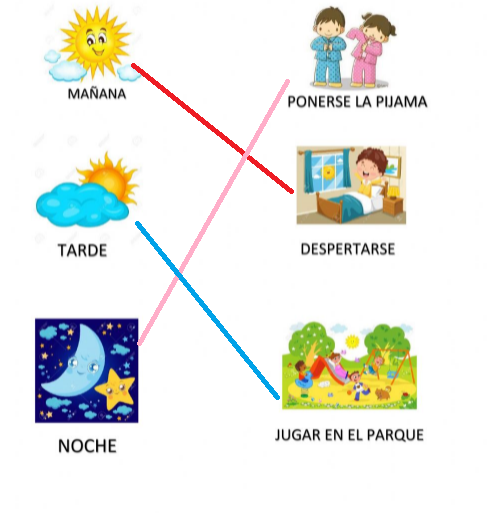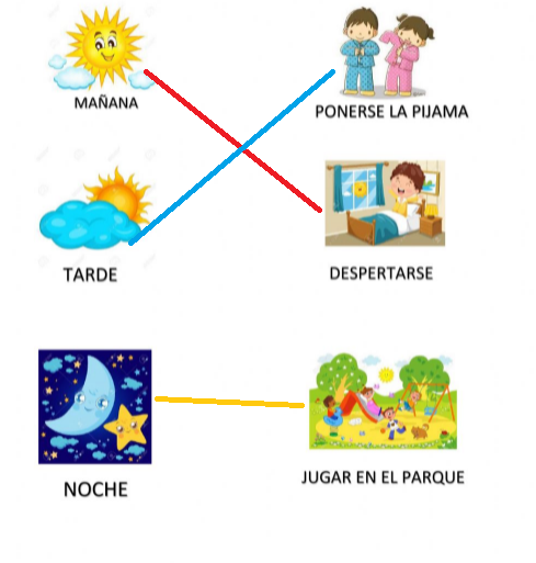 Elige la imagen que une de manera correcta los dibujos de las actividades que realizas en la mañana, tarde y noche.