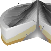 Matching Pairs Quiz about volcanoesOnline version Learn the parts of a volcano by Alejandro Merino 1 Crater 2 Hardened lava (picture) 3 Main vent 4 Magma chamber (picture) 5 Earth's mantle (picture) 6 Crater (picture) 7 Cone 8 Crust (picture) 9 Cone (picture) 10 Ash, steam and gas. (picture) 11 Lava (picture) 12 Magmatchamber 13 Earth's mantle 14 Hardened lava 15 Crust 16 Ash, steam and gas 17 Lava 18 Main vent (picture) Layer of silicate rock between the crust and the outer core Cloud wich is pushed out of the volcano. Circular depresion at the top of the volcano Molten rocks after it reaches the surface Thin shell on the outside of Earth, Main tube that conects the magma chamber with the surface Triangle-shaped hill formed as material from volcanic eruptions. Store of underground magma also known as igneous rock, is formed when volcanic lava or magma cools and solidifies.