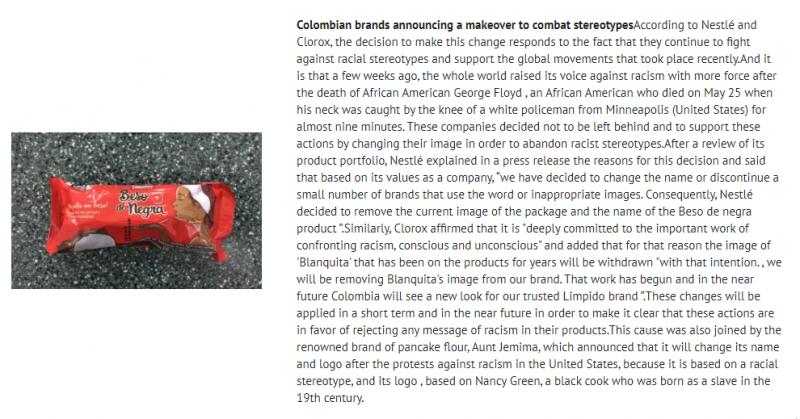 Reading ComprehensionOnline version Reading Comprehension by ALISON ALBAN LIZARAZO 1 What is the main theme of the reading? a about racism b about companies that change their image c about racism, stereotypes and awareness 2 why did the whole world raise its voice against racism? a Because there was racism in the packaging of some companies b Because the world became aware c For George Floyd's case 3 What do companies want to convey with their rebranding? a confronting racism b renovate its image c attract attention 4 Which two companies are willing to change their image? a Clorox and Nestle b Bavaria and Bimbo c Noel and Doria Feedback 1 about racism, stereotypes and awareness 2 For George Floyd's case 3 confronting racism 4 Clorox and Nestle
