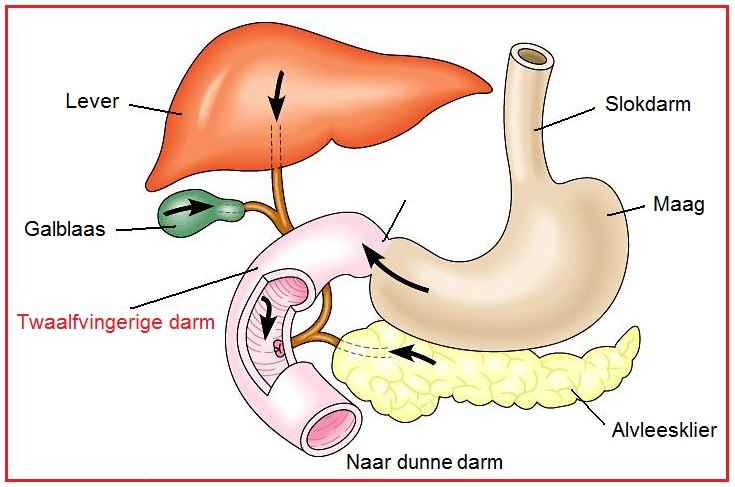 Froggy Jumps Het verteringsstelselOnline version Check your knowledge about the digestive system by Thijs den Otter (0968531) 1 Welk orgaan is het langst? a Dikke darm b Dunne darm c Blindedarm 2 Welke kringspier(en) komen in het verteringsstelsel voor? a De maagportier en de anus b De maagportier, de mond en de anus c De maagportier 3 stelling: 'De urineblaas is een deel van het verteringsstelsel' a Onjuist b Juist c 4 Op welke afbeelding is de twaalfvingerige darm te zien? a b c 5 Waarom heet de twaalfvingerige darm de twaalfvingerige darm? a De twaalfvingerige darm is 12 vingers lang b De twaalfvingerige darm is ontdekt door een man met 12 vingers c De twaalfvingerige darm ligt 12 vingerlengtes diep in het lichaam