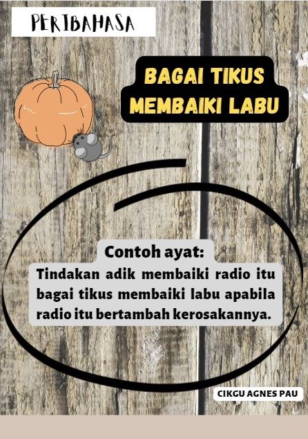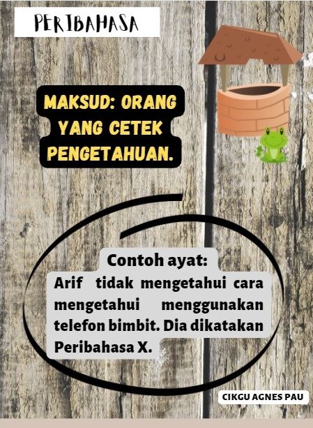 Froggy Jumps PeribahasaOnline version Marilah kita belajar peribahasa. by AGNES PAU CHING CHING 1 Berdasarkan contoh ayat dalam gambar di atas, apakah maksud peribahasa tersebut? a Fikiran yang sempit dan tiada pengetahuan b Hukuman atau pertimbangan yang kurang adil c Keadaan yang menyedihkan hati seseorang 2 Berdasarkan contoh ayat dalam gambar di atas, apakah maksud peribahasa tersebut? a Nasihat yang diberikan tidak diambil peduli serta tidak memberi kesan kepada seseorang pendengar. b Rakyat menjadi susah kerana kehilangan pemimpin. c Membuat kerja dengan sambil lewa atau tidak bersungguh-sungguh. 3 Berdasarkan contoh ayat dalam gambar di atas, apakah maksud peribahasa tersebut? a Ilmu yang tidak diamalkan. b Perbuatan yang tidak berfaedah. c Memperbetulkan sesuatu barang yang tidak diketahuinya,akhirnya barang tersebut menjadi semakin rosak 4 Berdasarkan contoh ayat dalam gambar di atas, apakah maksud peribahasa tersebut? a Sering bertengkar antara satu sama lain. b Serasi atau rapat sekali. c Seseorang yang elok rupa parasnya tetapi tidak berbudi bahasa. 5 Berdasarkan contoh ayat dalam gambar di atas, apakah maksud peribahasa tersebut? a Bersifat tamak. b Melayan dengan sangat baik. c Dua orang yang mempunyai masalah komunikasi. 6 Berdasarkan maksud dalam gambar di atas, apakah peribahasa tersebut? a Hujan emas di negeri orang, hujan batu di negeri sendiri b Sediakan payung sebelum hujan c Bagai hujan jatuh ke pasir 7 Berdasarkan maksud dalam gambar di atas, apakah peribahasa tersebut? a Rajin seperti semut b Hitam-hitam gula jawa c Ada gula ada semut 8 Berdasarkan maksud dalam gambar di atas, apakah peribahasa tersebut? a Seperti cincin dengan permata b Seperti si kudung mendapat cincin c Setumbuk bagai gelang, sejodoh bagai cincin 9 Berdasarkan maksud dalam gambar di atas, apakah peribahasa tersebut? a Seperti katak ditimpa kemarau b Seperti katak di bawah tempurung c Mati dicatuk katak 10 Berdasarkan maksud dalam gambar di atas, apakah peribahasa tersebut? a Seperti rusa masuk kampung b Mati rusa kerana tanduknya c Seperti rusa kena tambat