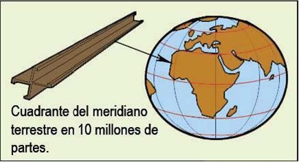 En 1875, Francia envió a más de 30 países duplicados del metro patrón (barra de platino iridiado que se definió como la diezmillonésima parte de la longitud del cuadrante del meridiano terrestre que pasa por París).