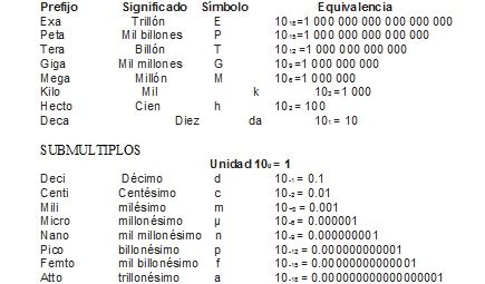 Además de las unidades antes mencionadas, se establecieron otros acuerdos, entre los que destacan los siguientes: La relación entre las unidades y sus múltiplos y submúltiplos se regirá por una serie de prefijos que se enuncian en la tabla que se describe a continuación. Los símbolos correspondientes se escriben sin punto final.