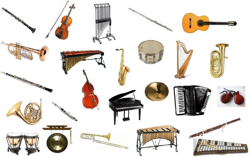 1 arpa 2 castanyoles 3 timbales 4 clavecí 5 guitarra 6 violoncel 7 fluta travessera 8 plats 9 trompa