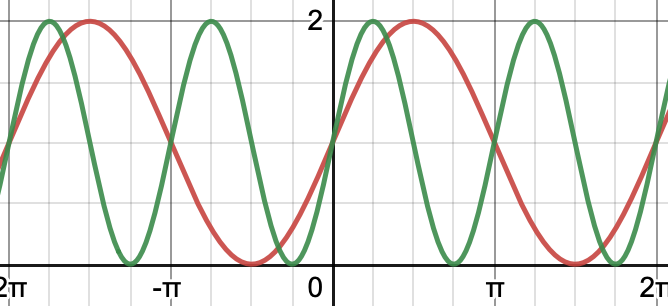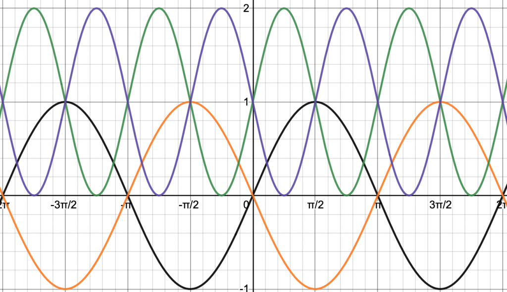 Za kateri graf na sliki velja: f(x) = sin 2x+1 ?