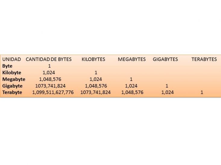 1 Byte = combinación de ocho ceros ó unos. Ejemplo: 0 1 0 0 0 0 0 1
