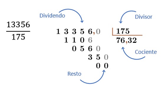 Los términos de la división son: Dividendo, divisor, cociente y residuo.