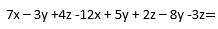 GUÍA DE PENSAMIENTO NUMÉRICOOnline version Resuelve los siguientes ejercicios by Diana Rico Castillo 1 ¿Cuál es el resultado de la operación? a a b b c c d d 2 Un médico receta a un paciente tomar una pastilla cada 6 horas y un jarabe cada 8 horas. Si inicia el tratamiento tomándose la pastilla y el jarabe a la misma hora ¿Después de cuantas horas volverá a tomarse ambos medicamentos? a a) 34 horas b b) 24 horas c c) 15 horas d d) 14 horas. 3 ¿Cuál es el resultado de la operación? a a) b b) c c) d d) 4 ¿Cuál es el resultado de la operación? a a) b b) c c) d d) 5 Un águila puede volar hasta 299 metros de la tierra, mientras que un fósil puede descomponerse a 29 metros debajo de la tierra. ¿Cuál es la distancia que hay entre el fósil y el águila “en pleno vuelo”? a a) 270 metros b b) 328 metros c c) 10.3 metros d d) 8671 metros 6 Simplifica a a) b b) c c) d d) 7 ¿Cuál es el resultado de la operación? a a) b b) c c) d d) 8 ¿Cuál es el resultado de la operación? a a) b b) c c) d d) 9 ¿Cuál es el resultado de la operación? a a) b b) c c) d d) 10 ¿Cuál es el resultado de la operación? a a) b b) c c) d d) 11 ¿Cuál es el resultado de la operación? a a) b b) c c) d d) 12 Desarrolla el siguiente Binomio conjugado a a) b b) c c) d d) 13 ¿Cuál es el resultado de la operación? a a) b b) c c) d d) 14 ¿Cuál es el resultado de la operación? a a) b b) c c) d d) 15 Una empresa construye estructuras p*-rediseñadas para casas y edificios. Si x representa el número de estructuras y los costos de producción son: x^2+12x-1200 para las casas y para los edificios 3x^2+x+2000 ¿Cuál es el costo total de producción de la compañía? a a) b b) c c) d d) 16 El largo de un terreno en metros lo determina la expresión (2a^2+3a+2) y su ancho está representado por (2a-1) ¿Cuál es la superficie del terreno en metros cuadrados? a a) b b) c c) d d) 17 Desarrolla el Binomio a a) b b) c c) d d) 18 Obtén la factorización de la expresión a a) b b) c c) d d) 19 Factoriza por agrupación la expresión. a a) b b) c c) d d) 20 Factoriza la expresión a a) b b) c c) d d) 21 Factoriza el siguiente trinomio a a) b b) c c) d d) 22 Factorizar a a) b b) c c) d d) 23 Realiza la operación a a) b b) c c) d d) 24 Enrique vende 1/4 de terreno a de su finca, alquila 1/6 y lo restante lo cultiva. ¿Qué porción de la finca siembra? a a) b b) c c) d d) 25 ¿Cuál es el resultado de la operación? a a) b b) c c) d d) 26 Realiza la diferencia de cuadrados a a) b b) c c) d d) 27 ¿Cuál es el resultado de la operación? a a) b b) c c) d d) 28 ¿Cuál es el resultado de la operación? a a) b b) c c) d d) 29 Desarrolla el Binomio a a) b b) c c) d d) 30 Desarrolla la operación a a) b b) c c) d d) 31 ¿Cuál es el resultado de la operación? a a) b b) c c) d d) 32 ¿Cuál es el resultado de la operación? a a) b b) c c) d d) 33 ¿Cuál es el resultado de la operación? a a) b b) c c) d d) 34 ¿Cuál es el resultado de la operación? 8+2+4-9-10-6-7-2-1-12= a a) -44 b b) -33 c c) 30 d d) 44 35 ¿Cuál es el resultado de la operación? a a) b b) c c) d d) 36 Una familia de 6 personas asiste a un restaurante de comida rápida que en todos sus paquetes tienen descuentos, el padre y la madre compran cada uno paquetes de $100, los cuales tienen un descuento de $20 cada uno. Los niños piden cada uno paquetes de $75, con un descuento de $15 por paquete. ¿Cuánto es lo que pagan por todos los paquetes? a a) $ 170 b b) $ 400 c c) $ 360 d d) $ 340