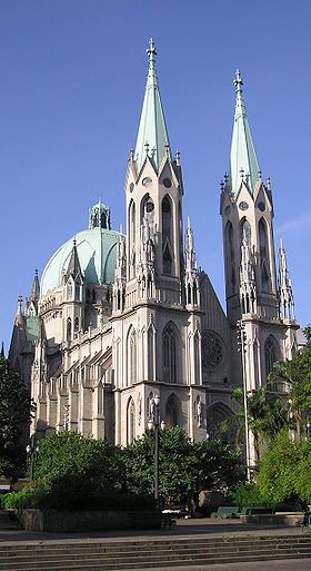 La forma de las catedrales, suelen ser de planta de cruz latina, con tres o cinco naves, la central más ancha y más larga que las naves laterales.