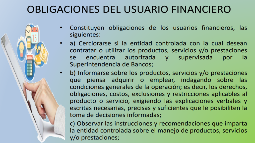 Froggy Jumps Usuario FinancieroOnline version Contabilidad Bancaria by Irene Molina 1 Recibir educación financiera es un derecho para el usuario. a A veces b Siempre c Nunca 2 Acceder y recibir directamente información clara, precisa, oportuna, razonable, adecuada, validada, veraz y completa, relacionada con los productos y servicios ofertados por las instituciones del sistema financiero, pertenece a: a DERECHO A LA EDUCACIÓN FINANCIERA b DERECHO A ELEGIR CON LIBERTAD LOS PRODUCTOS Y SERVICIOS FINANCIEROS c DERECHO A LA INFORMACIÓN DE PRODUCTOS Y SERVICIOS FINANCIEROS 3 Exigir rectificación de la información de los datos personales en las bases de datos cuando ésta sea inexacta o errónea, corresponde a: a DERECHO A PROTECCIÓN b DEL ACCESO A LA INFORMACIÓN Y DOCUMENTACIÓN c DERECHO A OBTENER PRODUCTOS Y SERVICIOS FINANCIEROS DE CALIDAD 4 Pagar las responsabilidades en las instituciones financieras, es para el usuario: a Un derecho b Una obligación c Ninguna de las anteriores 5 Tiene que ver con la posibilidad de presentar quejas ante las instancias pertinentes cuando el usuario se haya visto afectado por alguna acción u omisión de una institución financiera. Pertenece a: a Derecho a la protección b Derecho al reclamo c Obligación de pago 6 La entidad que regula el cumplimiento de los derechos y obligaciones del usuario financiero es: a Superintendencia de Bancos del Ecuador b BanEcuador c Banco Central del Ecuador