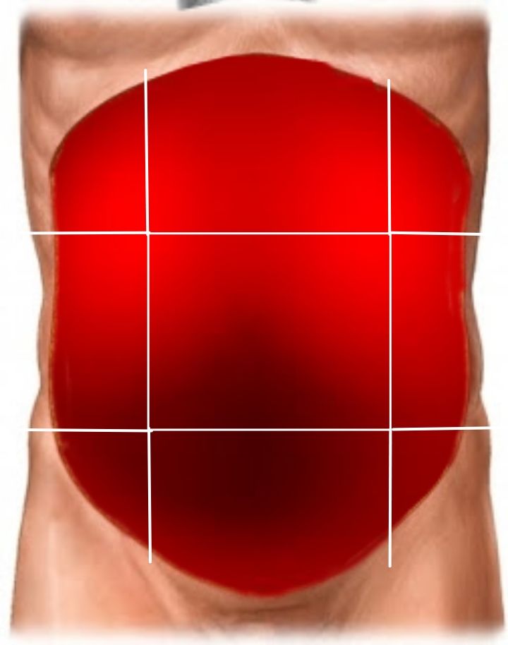 Froggy Jumps Región abdominalOnline version ¿Podrás identificar los cuadrantes abdominales y los órganos presentes en cada parte? Averígualo. by Edgar Aldair Fong Jurado 1 ¿Qué órgano no hace parte del mesogastrio? a Páncreas b Colón c Riñón 2 El dolor en qué región es un foco o parámetro para el diagnóstico de apendicitis. a Epigastrio b Fosa ilíaca derecha c Fosa ilíaca izquierda 3 Marca verdadero o falso. ¿Son los pulmones parte de la región abdominal? a Falso b Verdadero c Los pulmones son un invento del gobierno 4 ¿En cuántas regiones se encuentra dividido el abdomen? a 4 b 9 c 6 5 ¿En qué región se encuentra el bazo? a Hipocondrio izquierdo b Fosa ilíaca derecha c Hipocondrio derecho 6 Indica cuál de estas opciones es el epigastrio a b c 7 En el hipogastrio de un hombre se encuentra a Cordón espermático, próstata y la vejiga urinaria b Vejiga urinaria, próstata y el recto c Útero, vejiga urinaria y el recto 8 ¿El dolor en qué regiones es un foco o parámetro para el diagnóstico de cálculo renal? a Hipocondrio derecho o izquierdo b Mesogastrio c Flanco izquierdo o derecho 9 ¿Qué órganos se encuentran en el hipocondrio derecho? a Colon transverso, cola del bazo, ángulo esplénico del colon, páncreas, glándula suprarrenal y riñón. b Estómago, duodeno, páncreas, plexo solar, colon Sigmoides. Asas delgadas y Colon transverso. c Hígado, Vesícula biliar, Angulo hepático del colon, Glándula suprarrenal y Riñón. 10 Seleccione la imagen perteneciente a la zona faltante. a b c