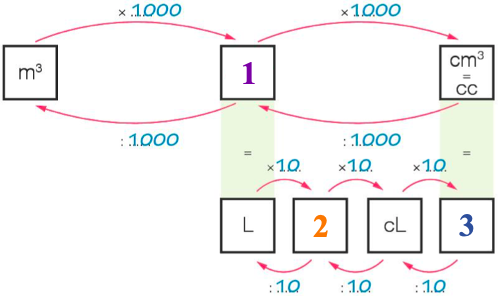 Froggy Jumps QuizzOnline version activiteit by Döne Güneyli (1007956) 1 700 mL...............................L a 700 : 10 : 10 = 7 L b 700 : 10 : 10 : 10 = 0,7 L c 700 x 10 x 10 = 70000 L 2 Welke eenheid hoort bij plaats 1? a dm^3 b km^3 c dL 3 Welke eenheid hoort bij plaats 2? a mL b dL c cL 4 Welke eenheid hoort bij plaats 3? a kL b hL c mL 5 6,2 cL =................................dL a 6,2 x 10 x 10 = 620 dL b 6,2 x 10 = 62 dL c 6,2 : 10 = 0,62 dL