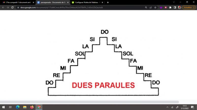 Pasaparaula MusicaOnline version Es Para musica by Mohamed Lamine Djitte A B C D E F G H I J K L M N O P Q R S T U V W X Y Z Comença per A Instrument de corda pinçada amb moltes cordes Comença per B Compositor de loda de alegria Comença per C instrument de vent que sona clar i net Comença per D Petit instrument metàl·lic que serveix per afinar instruments o donar el to. Comença per E Comença per F Instrument de vent-fusta que es toca de costat (nom complet: dues paraules) Comença per G Instrument de corda pinçada de 6 cordes Conté H Trio musical català sorgit arran del confinament. Les seves cançons, gravades a la terrassa de casa seva i tocades amb alguns instruments molt casolans (com la famosa galleda blava) ja són conegudes arreu del món. A les cançons que enregistren sovint conviden altres músics a través del mòbil. El nom del grup, és la derivació d’una frase que en anglès vol dir “queda't a casa”. Comença per I Objectes que utilitzen els músics per a interpretar la música (plural). Comença per J Estil musical nascut als Estats Units, en el qual s'improvitza de manera habitual. Conté K Instrument de corda pinçada més petit que la guitarra i amb només quatre cordes. Comença per L La nota que ens dona el to Comença per M Instrument de percussió amb plaques de metall. En tenim a l'escola i té una l·l al mig del seu nom Comença per N Figura rítmica que equival a quatre semicorxeres. Comença per O Agrupació de totes les famílies d'instruments. Comença per P es cinc línies que serveixen per a escriure partitures. Conté Q Serveixen per a colpejar alguns instruments de percussió (plural) Comença per R El doble d'una blanca Comença per S La dansa més bella de totes les danses que es fan i es desfan. Comença per T L'instrument de vent-metall més gros. Conté U Estil musical que ve dels Estats Units. Té relació amb el color blau perquè el nom significa nostàlgia i enyor. Comença per V Compositor de LES QUATRE ESTACIONS Comença per W Compositor de LA FLAUTA MÀGICA (nom complert: tres paraules). Comença per X Instrument de percusió amb plaques de fusta. En tenim a l'escola. Comença per Y Un dels tres ossets que componen l'orella mitjana Conté Z Terme musical d'intensitat que vol dir mig fluix