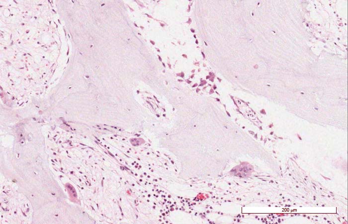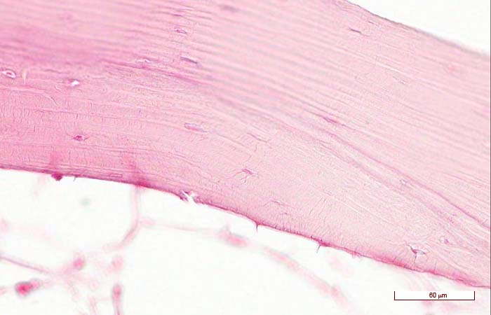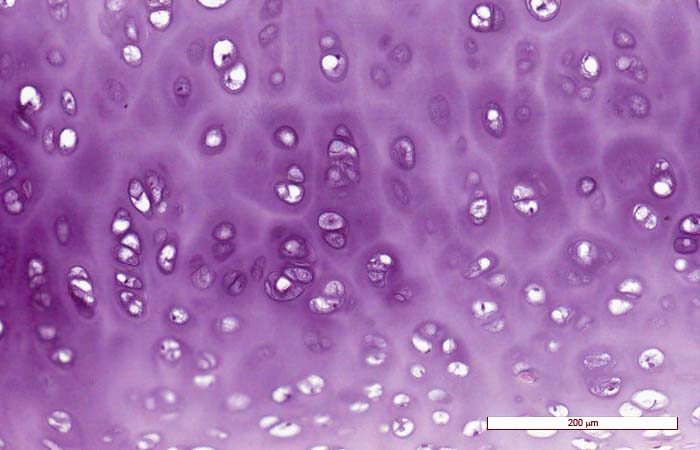 CH Tejido oseo y cartílagoOnline version Contesta adecuadamente by Brian Hesús Ambrocio Miranda 1 A qué corresponde la siguiente imagen a Hueso compacto b Hueso esponjoso c Hueso reticular 2 A qué corresponde la siguiente imagen a Cartílago hialino b Cartílago articular c Cartilago elástico d Fibrocartilago 3 A qué corresponde la siguiente imagen a Cartilago hialino b Cartilago elastico c Cartilago elástico d Fibrocartilago 4 A qué corresponde la siguiente imagen a Cartilago hialino b Cartilago elastico c Cartilago fibroso 5 A qué corresponde la siguiente imagen a Cartilago hialino b Cartilago elastico c Tejido conjuntivo laxo d Fibrocartilago 6 A qué corresponde la siguiente imagen a Musculo estriado esquelético b Cartilago elastico c Hueso reticular d Hueso esponjoso 7 A qué corresponde la siguiente imagen a Hueso compacto b Hueso esponjoso c Cartilago fibroso 8 A qué corresponde la siguiente imagen a Epitelio plano simple + Cartilago elastico b Epitelio cilindrico psudoestratificado + cartilago elastico c Epitelio cilindrico simple´+ cartilago hisalino d Epitelio cilindrico pseudoestratificado + cartilago hialino 9 A qué corresponde la siguiente imagen a Hueso compacto b Hueso esponjoso c Hueso trabecular d Hueso reticular 10 A qué corresponde la siguiente imagen a Hueso compacto b Hueso esponjoso c Hueso trabecular d Hueso reticular 11 Sintetizan osteoide e intervienen en la mineralización; se encuentran alineados a lo largo de superficies óseas. a Osteoclastos b Osteocitos c Osteoblastos 12 Prácticamente inactivos atrapa dos en el interior del hueso formado; pueden ayudar a la nutrición del hueso. a Osteoclastos b Osteocitos c Osteoblastos 13 Células fagocitarias capaces de erosionar el hueso y que, junto con los osteoblastos, son importantes en el recambio y la remodelación constantes del hueso. a Osteoclastos b Osteocitos c Osteoblastos 14 Hormona que estimula la resorción osteoclástica a Calcitonina b Hormona paratiroidea c Calretinina 15 Está constituido por una red de finas láminas irregulares llamadas trabéculas, separadas por espacios intercomunicados a Hueso compacto b Hueso esponjoso c Cartilago elástico d Hueso reticular 16 El colágeno del hueso se encuentra casi exclusivamente en forma de fibras de tipo: a I b II c III d IV 17 El colágeno y los demás componentes orgánicos de la matriz son sintetizados en el retículo endoplásmico rugoso de los osteoblastos, se concentran en el aparato de Golgi y se secretan desde la superficie celular, dando lugar a la producción de a Cemento b Hueso calcificado c Osteoide d Colágeno resistente 18 En este modo de crecimiento las células mesenquimales se diferencian a osteoblastos, que comienzan la síntesis y secreción de osteoide en múltiples centros de osificación. a Osificación intramembranosa b Osificación laminar c Osificación endocondral 19 En este modo de crecimiento se forma un molde pequeño del hueso largo con cartílago hialino sólido. Éste experimenta un crecimiento fundamentalmente aposicional hasta dar lugar a una masa de cartílago alargada, con forma de reloj de arena, consistente en un tallo y unas futuras porciones articulares, rodeadas por pericondrio a Osificación intramembranosa b Osificación laminar c Osificación endocondral 20 En esta zona de crecimiento epifisiario los grupos de células cartilaginosas experimentan divisiones mitóticas sucesivas formando columnas de condrocitos separados por una matriz fuertemente teñida rica en proteoglucanos. a Maduración b Hipertrofia c Degeneración d Proliferación 21 En esta zona de crecimiento epifisiario los condrocitos aumentan mucho de tamaño y son vacuolados, mientras que la matriz se calcifica. a Proliferacion b Hipertrofia c Degeneración d Maduración 22 Presente en los discos Intervertebrales y las sínfisis. Características Intermedias entre el cartílago hialino y el tejido conjuntivo denso regular. Abundante colágeno. a Cartilago hialino b Cartilago elastico c Fibrocartilago 23 Forma parte de la laringe y el oído externo. Parecido al cartílago hialino, pero con abundantes fibras elásticas. a Cartilago hialino b Cartilago elastico c Fibrocartilago Explicación 3 El fibrocartílago tiene características intermedias entre el cartílago y el tejido conjuntivo denso. Se encuentra en los discos intervertebrales, en algunos cartílagos articulares, en la sínfisis del pubis y asociado al tejido conjuntivo denso de las cápsulas articulares, los ligamentos y las inserciones de algunos tendones a los huesos. 4 El fibrocartílago tiene características intermedias entre el cartílago y el tejido conjuntivo denso. Se encuentra en los discos intervertebrales, en algunos cartílagos articulares, en la sínfisis del pubis y asociado al tejido conjuntivo denso de las cápsulas articulares, los ligamentos y las inserciones de algunos tendones a los huesos. 5 Las divisiones mitóticas posteriores originan agregados de condroblastos dispuestos densamente que crecen y comienzan a sintetizar la sustancia fundamental y el material extracelular fibroso. 9 El hueso está formado por células y una matriz extracelular predominantemente fiíjrosa (colágeno tipo I) denominada osteoid e que se mineraliza por depósito de h id roxiap atita calcica, gracias a la cual el hueso goza de una rigidez y una fuerza considerables. 10 El hueso forma el fuerte y rígido endoesqueleto al que se unen los músculos que hacen posible el movimiento. También actúa como reservorio de calcio y es importante en la homeostasis de dicho ion. 11 El hueso es pesado, pero su arquitectura es óptima para proporcionar un máximo de fuerza con un peso mínimo. Casi todos los huesos constan de una capa externa densa y rígida de hueso compacto, la corteza, y una zona m edular o espon josa central, de finas y estrechas trabéculas óseas interconectadas. 14 Incrementa la liberación de iones calcio del hueso, mientras que la calcitonina inhibe la actividad de 