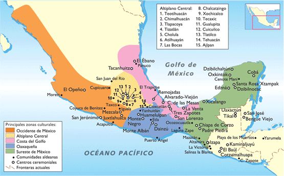 MesoaméricaOnline version Localiza las diferentes zonas culturales de Mesoamérica by Ivonne Ransoli 1 Costa del Golfo 2 Occidente 3 Altiplano central 4 Oaxaca 5 Maya