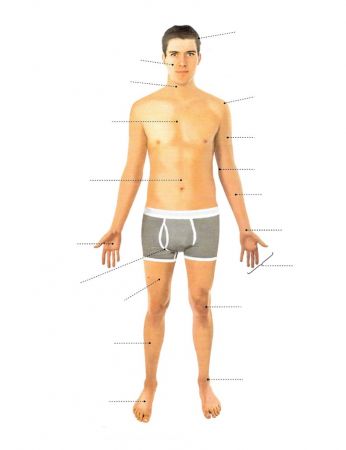 Body PartsOnline version Choose the correct body parts by Silvia Galvis 1 Head 2 Face 3 Neck 4 Chest 5 Shoulder 6 Elbow 7 abdomen 8 Hand 9 Arm 10 Fingers 11 Hand 12 Leg 13 Knee 14 Foot