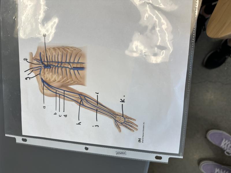 Arm VeinsOnline version HSC 111/113 by Deanna Devauld 1 Axillary 2 Brachial 3 Cephalic 4 Basilic 5 Superior Vena Cava 6 Left Subclavian 7 Right Subclavian 8 Medial Cubital Vein 9 Ulnar 10 Radial 11 Superficial Venous Palmar Arc