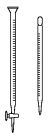 Material de vidrio para medir volúmenes con toda precisión. Se emplea, especialmente, para valoraciones. La llave sirve para regular el líquido de salida. Manejo: 1) se llena con la ayuda de un embudo. 2) los líquidos han de estar a la temperatura ambiente. 3) el enrase debe hacerse con la bureta llena (aunque también se puede enrasar a cualquier división), tomando como indicador la parte baja del menisco. 4) la zona que hay entre la llave y la boca de salida debe quedar completamente llena de líquido.