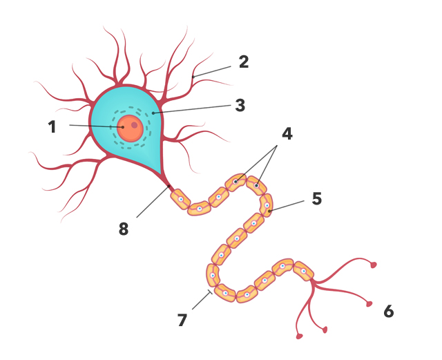 Función de relaciónOnline version Test sobre o sistema nervioso e o endocrino. by Paula Veiga Varela 1 Que parte do cerebro controla o impulso sexual? a O bulbo raquídeo b Hipotálamo c Cerebelo 2 Que célula da glía capta neurotransmisores? a Astrocitos b Células de Schwann c Microglía 3 Con que parte da neurona se corresponde o número dous da imaxe? a Axón b Dendrita c Soma 4 Cal é a meninxe máis interna? a Duramadre b Aracnoides c Piamadre 5 Cal destas é unha función do cerebelo? a Manter o equilibrio b Control do latexo cardíaco c Fagocitar restos celulares 6 Que glándula endocrina produce insulina? a Tiroides b Cápsula suprarrenal c Páncreas 7 Cal destas non é unha glándula producida pola cápsula suprarrenal? a Mineralcorticoides b Adrenalina c Glucagón 8 Cal é a función da hormona LH Luteizante? a Estimular a ovulación e a secreción de proxesterona b Estimular a produción de espermatozoides c Activar a hipófise para que actúe 9 Cal non é unha hormona do "stress"? a Adrenalina b Hiperactina c Noradrenalina 10 Cal destas hormonas actúa sobre os espermatozoides? a Estróxenos b FRH c Testosterona 11 Cal destas definicións non se corresponde coa de sinapse? a Unión funcional entre dúas neuronas b Unión funcional entre unha neurona e unha célula da glía c Unión funcional entre unha neurona e unha célula muscular 12 Cal destas afirmacións é correcta? a A substancia branca ocupa a rexión central da medula b A substancia branca está formada polos corpos das neuronas c A substancia branca sitúase na periferia da medula 13 Cantos pares de nervios craneais hai? a 31 b 12 c 15 14 Que neuronas conducen os impulsos nerviosos desde os receptores sensoriais ós centros nerviosos? a Neuronas sensitivas b Neuronas multipolares c Neuronas eferentes 15 Que parte sinala o número 5 da imaxe? a Terminal axómico b Membrana postsináptica c Fenda sináptica