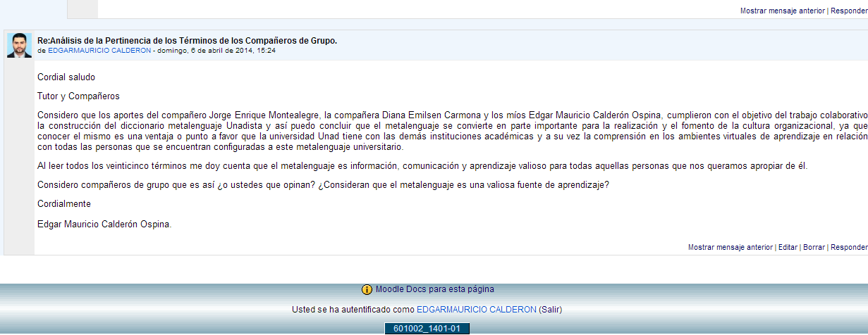 Guia de buen uso de foros y pasos para participar. Tomado de: https://sena.blackboard.com/bbcswebdav/institution/Guia%20de%20buen%20Uso%20de%20foros.pdf 20 de Septiembre 2014.