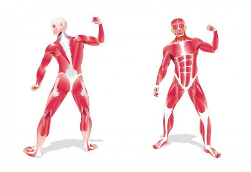 1 Bíceps braquial 2 Tríceps 3 Cuádriceps 4 Bíceps femoral 5 Abdominales 6 Pectoral 7 Glúteo 8 Deltoides 9 Trapecio 10 Dorsal 11 Abductores 12 Oblícuos 13 Lumbares 14 Gemelos 15 Tibiales