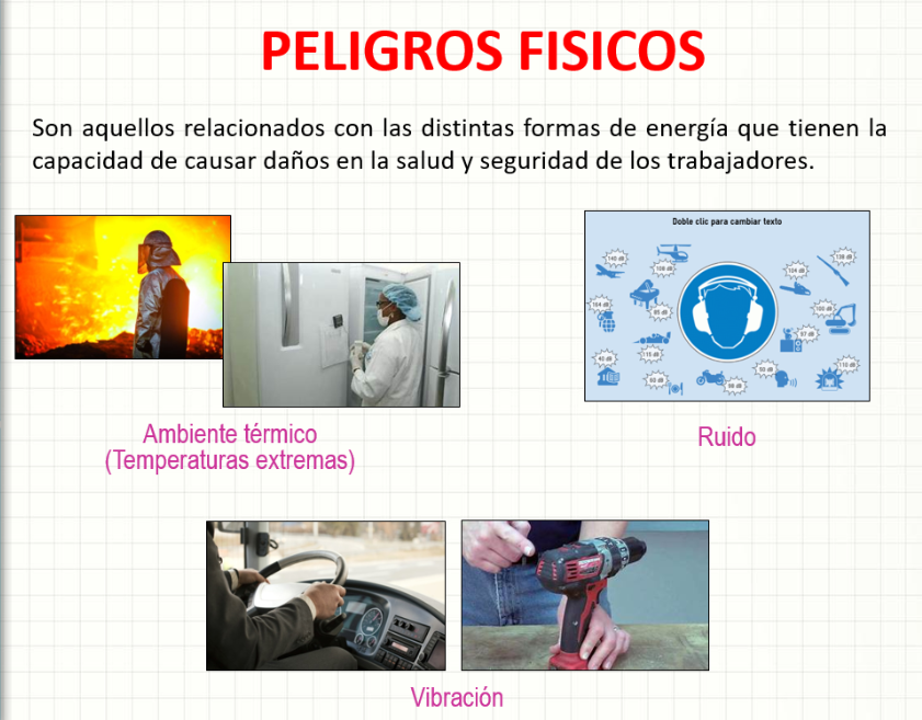 Memory Game IDENTIFICACION DE PELIGROSOnline version La identificación de peligros es un paso fundamental en el proceso de gestión de la seguridad y salud en el trabajo (SST) en muchos países, y los Comités Paritarios de Seguridad y Salud en el Trabajo (COPASST) son parte importante de este proceso en algunos lugares. Los COPASST son instancias donde trabajadores y trabajadores colaboran en la promoción de condiciones seguras y saludables en el lugar de trabajo. Rincón, M.( 2023, Agosto).IDENTIFICACION DE PELIGROS (GTC45) (Diapositivas de Power Point).Fundación Santafé de Bogotá. by Paola Molina Peligros Biomecánicos Riesgos Biológicos Peligros Químicos Peligros Químicos Peligros de condiciones de seguridad Peligros Psicosociales Riesgos Biológicos Peligros Biomecánicos Peligros Fisicos Peligros de condiciones de seguridad Peligros Psicosociales Peligros Fisicos