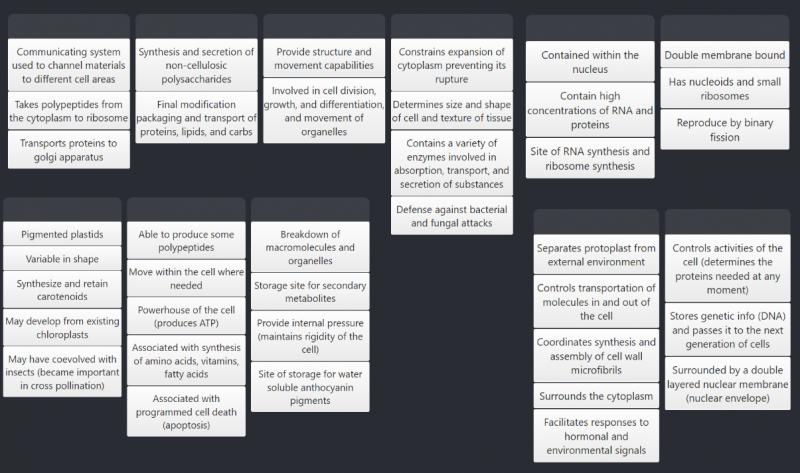 Cell StructuresOnline version Match the cell structure to its functions and properties by Allyssa Sicks 1 Endoplasmic Reticulum 2 Golgi Apparatus 3 Cytoskeleton 4 Cell Wall 5 Nucleolus 6 Plastids 7 Chromoplasts 8 Mitochondria 9 Vacuoles 10 Plasma Membrane 11 Nucleus