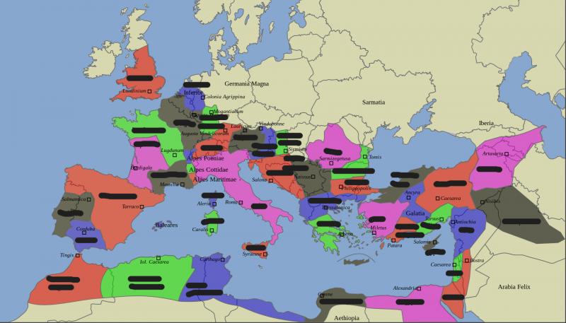 PROVINCIAS ROMANAS 117 d. C.Online version Localiza y sitúa las provincias del imperio romano by María García Díaz 1 Acaya 2 África proconsularis 3 Alpes Cotios, Marítimos y Peninos 4 Arabia Pétrea 5 Armenia romana 6 Asia 7 Bética 8 Bitinia y Ponto 9 Britania 10 Capadocia 11 Cilicia 12 Córcega 13 Cerdeña 14 Creta y Cirenaica 15 Chipre 16 Dacia 17 Dalmacia 18 Egipto 19 Galacia 20 Galia Aquitania 21 Galia Bélgica 22 Galia Céltica 23 Galia Narbonense 24 Germania superior 25 Germania inferior 26 Judea 27 Lusitania 28 Licia 29 Macedonia 30 Mauritania Tingitana 31 Mauritania Caesariensis 32 Mesia superior 33 Mesia inferior 34 Mesopotamia 35 Nórica 36 Panonia 37 Sicilia 38 Siria 39 Tracia 40 Tarraconense 41 Retia 42 Italia