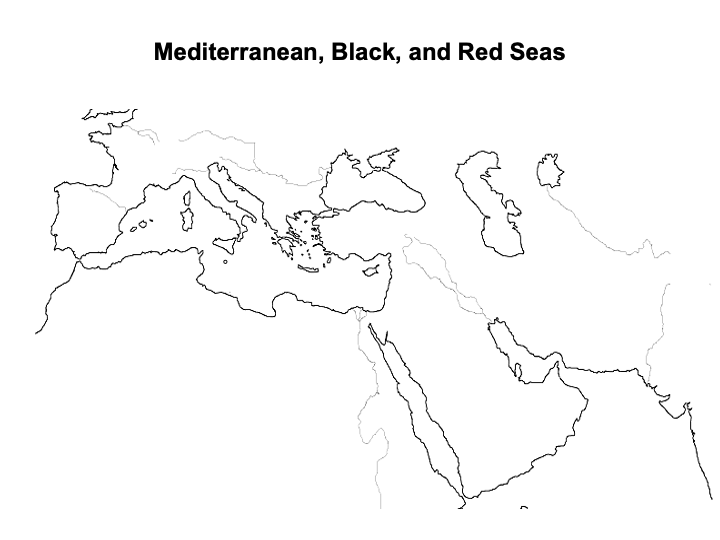 Mediterranean Map QuizOnline version Map of the Mediterranean. by Joseph Frierson 1 Corisca 2 Sardinia 3 English Channel 4 Bay of Biscay 5 Straits of Gibraltar 6 Sicily 7 Strait of Messina 8 Adriatic Sea 9 Danube River 10 Aegean Sea 11 Bosporus 12 Dardanelle 13 Black Sea 14 Tigris River 15 Euphrates River 16 Caspian Sea 17 Nile River 18 Cyprus 19 Crete 20 Red Sea 21 Gulf of Aqaba 22 Suez Canal 23 Carthage 24 Malta