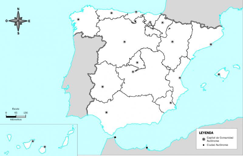 CCAA y capitales de EspañaOnline version Sitúa correctamente las siguientes Comunidades Autónomas y sus capitales by Esther Sánchez 1 Santiago de Compostela 2 Galicia 3 Principado de Asturias 4 Oviedo 5 Cantabria 6 Santander 7 País Vasco 8 Vitoria/Gasteiz 9 Comunidad Foral de Navarra 10 Pamplona 11 Aragón 12 Zaragoza 13 Cataluña 14 Barcelona 15 Comunidad de Madrid (Madrid) 16 Castilla y León 17 Valladolid 18 Extremadura 19 Mérida 20 Castilla-La Mancha 21 Toledo 22 Región de Murcia (Murcia) 23 Comunitat Valenciana 24 Valencia 25 Andalucía 26 Sevilla 27 Islas Baleares 28 Palma 29 Ceuta 30 Melilla 31 Canarias 32 Las Palmas de Gran Canaria 33 Santa Cruz de Tenerife 34 La Rioja 35 Logroño
