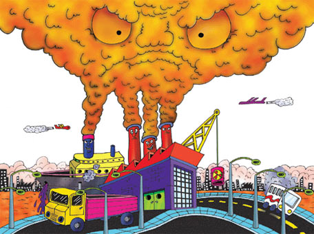 La contaminación del aire generalmente se refiere a los contaminantes generados por las actividades humanas por el uso de servicios como: la electricidad, medios de transporte, cocción de alimentos o de agua. La fabricación de bienes de consumo como: alimentos, medicinas o productos de limpieza, etc., produce contaminantes al aire.