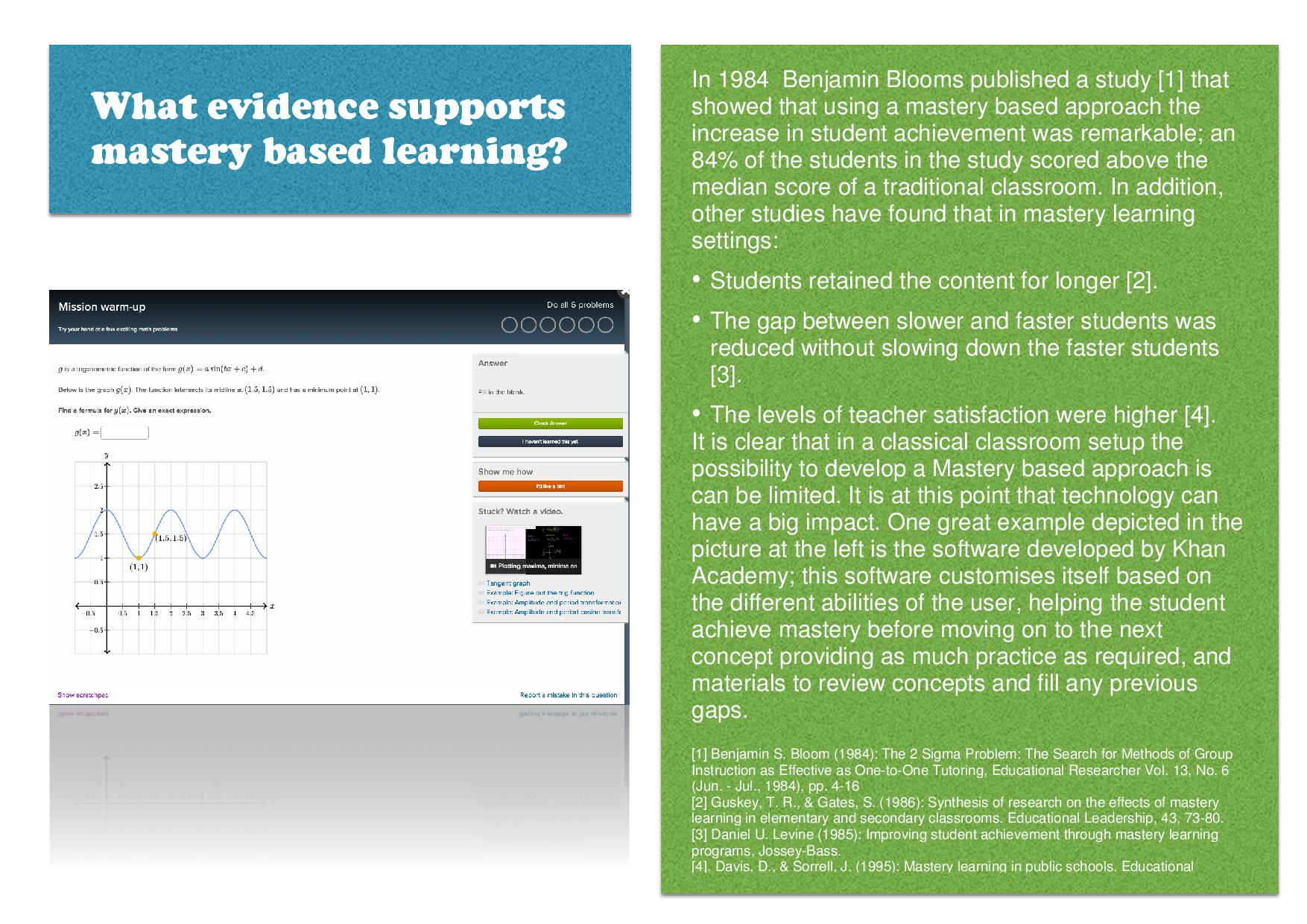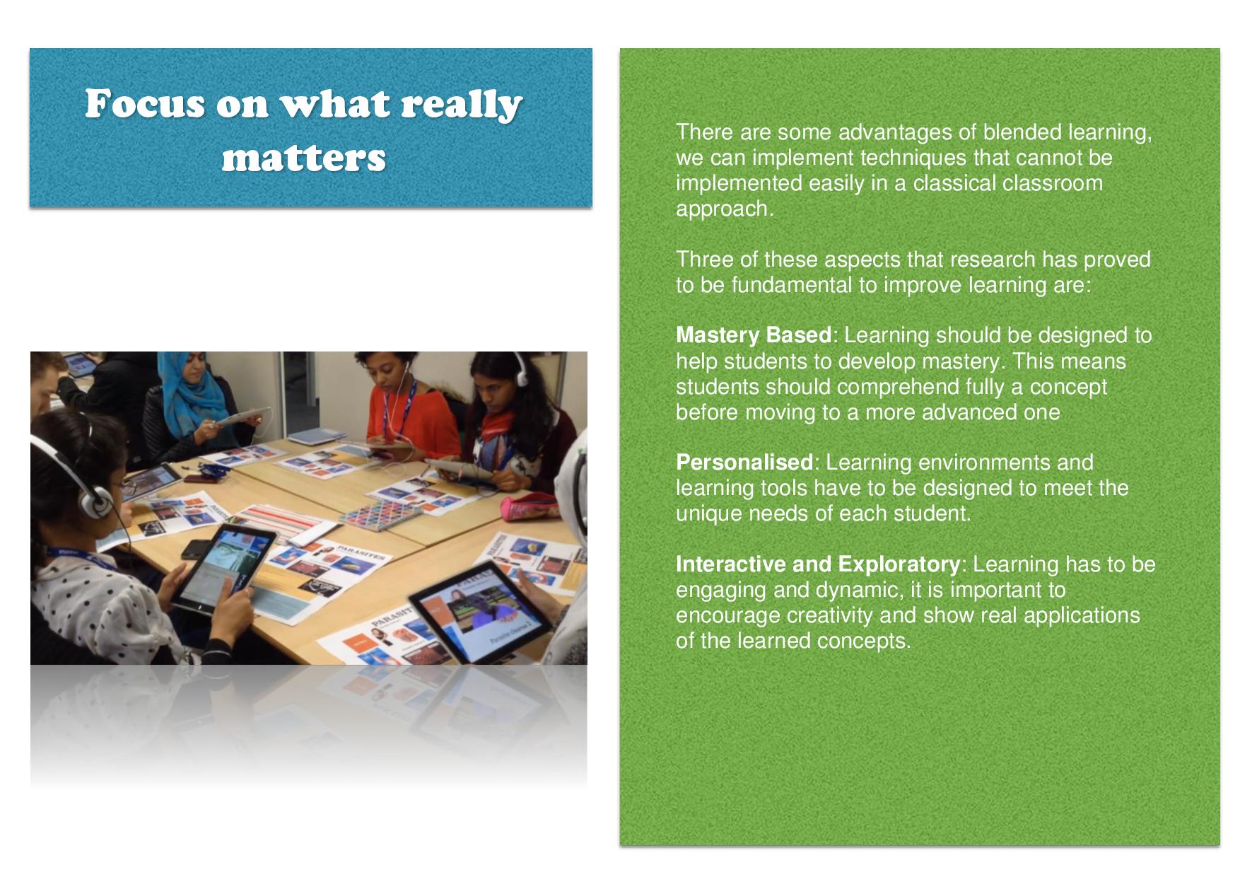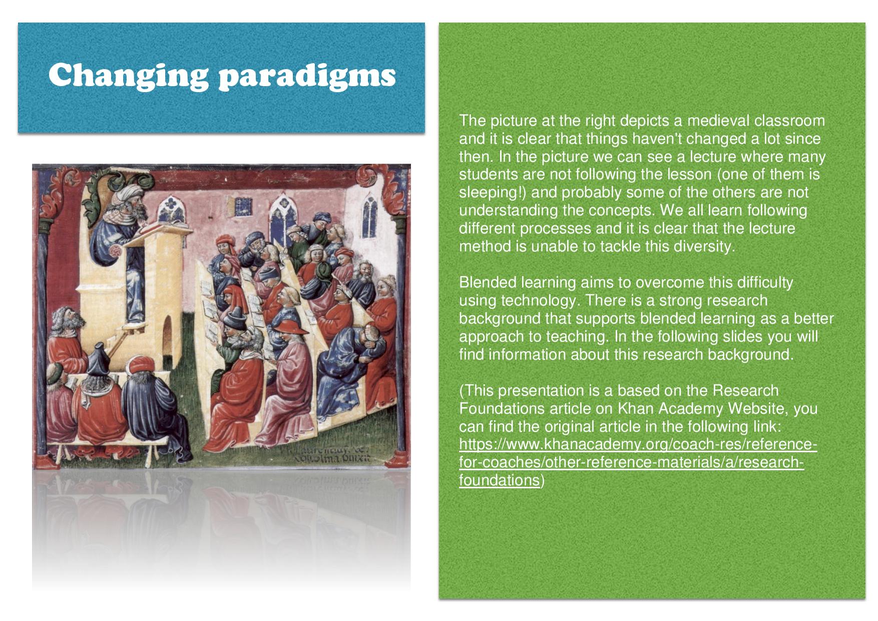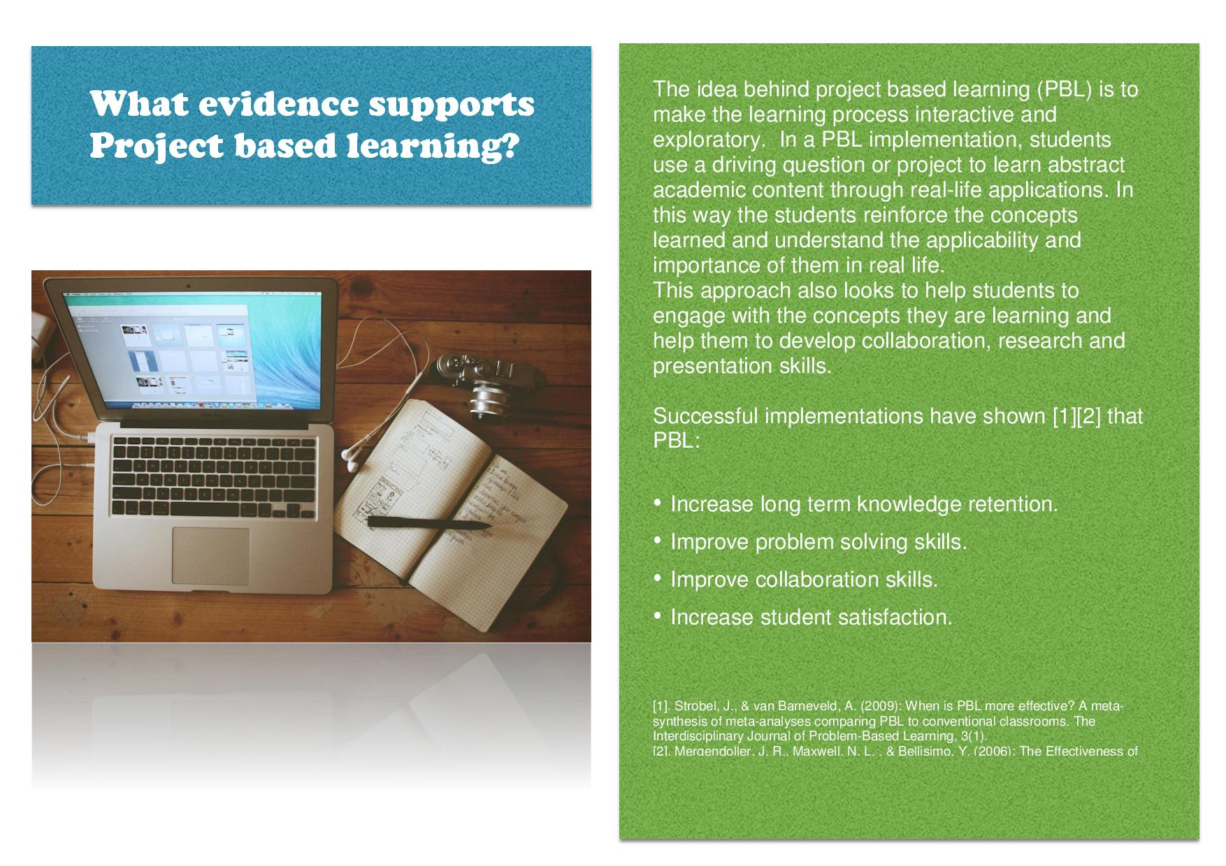 Research FoundationsOnline version Research Foundations in Blended Learning by Elearning Devices 1 Research Foundations Introduction 2 Changing Paradigms 3 Is Blended Learning any better? 4 Focus on what really matter 5 Mastery Based Learning 6 Profile of a 2020 learner 7 Personalised Learning 8 Project Based Learning: Explained 9 Project Based Learning