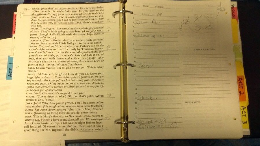 Matching Pairs Technical Vocabulary for Drama and TheatreOnline version Match the words and their meanings to their corresponding pictures. by mmm mmm 1 BACK LIGHT – Light coming from upstage of an actor. 2 HAZER – A device that creates a thin mist of fog throughout the stage. 3 CROSSFADER – the lever on alighting control console that simultaneously dims all the channels from one cut to the next. 4 PROMPT BOOK – the book compiled by the stage manager, containing all the pertinent information about the show. 5 JACK KNIFE PLATFORM – A platform that pivots on one corner 1 SHOTGUN MIC – A microphone designed to pick up sound only directly in front of it. 2 AUDIENCE BLINDERS – A bank of small PAR cans all mounted in the same fixture. Used to create a bright wash of light on the audience. 3 WOOFER – A speaker element that reproduces the low-end frequencies. 4 CALLBOARD – The back stage bulletin board where announcements, schedules and other information is posted. 5 GREEN ROOM – A common area where performers wait until it is time to go onstage. 1 PERSONAL PROPS – Items that are carried onstage by the actor during a performance. 2 FALSE PROSCENIUM – A portalthat gives the set its own “pictureframe". 3 BOOM STAND – A microphone with a horizontal attachment that can reach over a keyboard or other musical instrument.