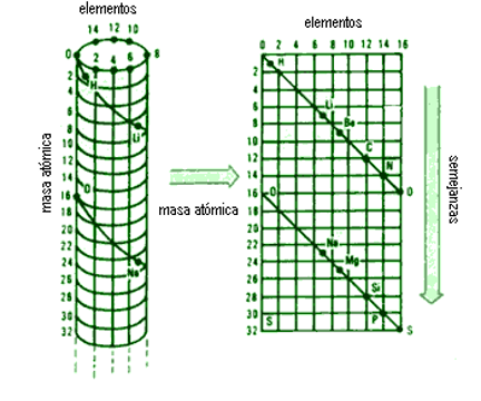 Matching Pairs Desarrollo de la Tabla PeriódicaOnline version Es un repaso de cómo fue elucidandose el acomodo de los elementos a través de la historia hasta llegar a la tabla periódica moderna actual by Karla María Rangel Arreola 1 1808 Los compuestos estan formados por elementos 2 La materia esta formada por muchas partículas pequeñas e invisibles – ÁTOMO 3 Robert Boyle 4 De Chancourtoi acomodo a los elementos de acuerdo a su masa atómica, observando propiedades semejantes en una línea de 45° 5 El fósforo fue descubierto por Henning Brand al final de la edad media a partir de la orina 6 Ley de las octavas 7 Construyó la primer tabla periódica, en función al peso y la valencia, colocando en columnas los elementos con mismas propiedades 8 Moseley 9 Se tenía la creencia de que podían transformar metales vulgares en metales preciosos 10 Primer acomodo de elementos donde tres elementos poseen propiedades químicas y físicas similares relacionados con sus pesos atómicos 11 Existen 4 elementos: tierra, agua, aire y fuego 12 Propuso la notación química, considerando la primera letra del nombre de cada elemento Newlands propone el acomodo en grupos, donde el 1° elemento tiene prop. físicas y químicas semejantes al 8°, el 2° con el 9°, etc. Criticó la teoría de Aristóteles y comenta la existencia de los elementos como el componente de la materia John Dalton Empédocles Fue el último alquimista J.J. Berzelius Hélice telúrica Las propiedades de los elementos químicos es una función periódica de su número atómico (z), es decir varían en forma periódica con la carga nuclear. Demócrates Modelo de las triadas Mendeleiev La edad media, la piedra filosofal