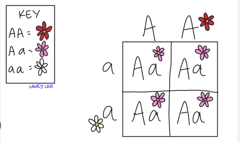Biology ReviewOnline version SB3. Obtain, evaluate, and communicate information to analyze how biological traits are passed on to successive generations by Derion Cubbage 1 Advantages of Sexual Reproduction 2 Advantages of Asexual Reproduction 3 Disadvantages of Sexual Reproduction 4 Disadvantages of Asexual Reproduction 5 Punnett Square with 75% Dominant 6 Incomplete Dominance 7 Co-dominance 8 Mendel's Law of Independent Assortment 9 Mendel's Law of Segregation More variations are found in sexual reproduction. Offspring has characteristics of both parents It can lead to the formation of new species. enhances the probability that the next generation will survive the population can increase rapidly when the conditions are favorable. only one parent is needed. it is faster than sexual reproduction. it is more time and energy efficient Requires two organisms requires more energy Favorable genes may not be passed down to the offspring. Reproduction is not always successful. any harmful mutation will also pass on to the offspring. The organisms produced have shorter lifespans. It is hard to control the increasing population. There is only limited diversity within the life forms. does not occur during asexual reproduction. None of the above