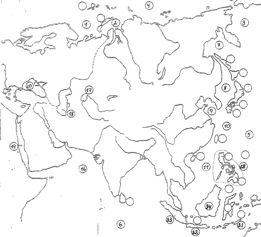 Asia's Physical Map (Seas, Oceans and Islands)Online version Learn Asia's Physical Map (Seas, Oceans and Islands) playing! by Mikel Fernández 1 Barents Sea 2 Kara Sea 3 Bering Sea 4 Arctic Ocean 5 Pacific Ocean 6 Indian Ocean 7 Okhotsk Sea 8 Japan Sea 9 Yellow Sea 10 East China Sea 11 South China Sea 12 Arabian Sea 13 Aral Sea 14 Caspian Sea 15 Red Sea 16 Black Sea 17 Philippine Islands 18 Timor Island 19 Java Island 20 Sumatra Island 21 Borneo Island