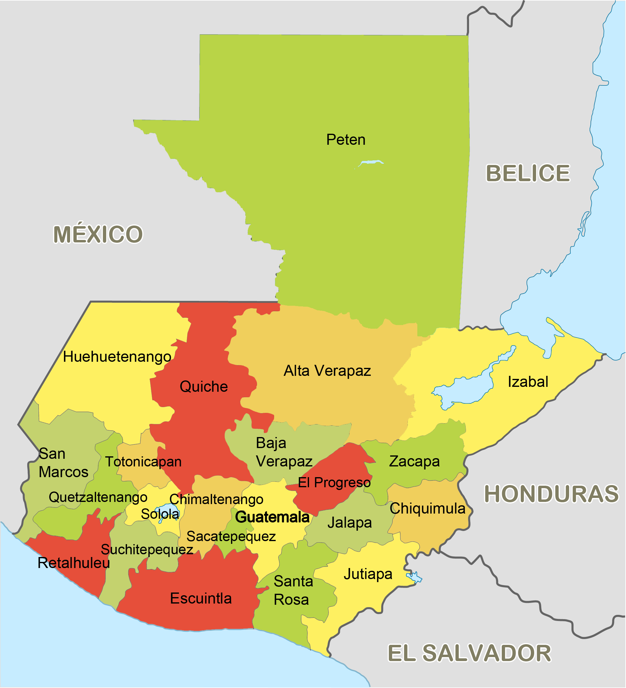 Departamentos de GuatemalaOnline version Identifica los departamentos de Guatemala by Edwin Nández 1 Alta Verapaz 2 Guatemala 3 Izabal 4 Peten 5 Huehuetenango 6 Chiquimula 7 San Marcos 8 Escuintla 9 Santa Rosa 10 Retalhuleu Explicación 1 es la principal característica de sus pobladores, que durante años lograron que los foráneos utilizaran el q'eqchi' como una lengua franca. 2 Esta repleto de edificios, transitan muchos vehículos y hay muchos centros comerciales 3 se cree que se refiere al Golfo Dulce, sin embargo, también podría decirse que proviene del vasco o vascuence, en cuyo idioma: Zabal equivale a ancho, posiblemente por la bahía. 4 Es el nombre de: El Petén, un ecosistema característico de Mesoamérica y especialmente de la península de Yucatán. 5 Su clima es variado como consecuencia de las grandes diferencias en elevación y la sinuosidad del terreno. 6 Datos generales de Chiquimula. Extensión territorial. 2,376 km² Altitud. 424 msnm. Densidad poblacional 146 p/Km². ( 2008) Clima. Cálido. Idiomas. Chortí y Castellano. Fiesta titular. 7 clima generalmente templado. Aunque, al encontrarse parte de su territorio cerca de la costa. 8 Posee una extensión territorial de 4384 km². Su cabecera departamental -del mismo nombre- es la ciudad más importante del departamento con una población aproximada de 162.000 habitantes. 9 La música folclórica, el asado, el mate, la empanada, el dulce de leche, el fútbol, la artesanía, la pintura y la agricultura. 10 Este departamento por tener un clima variado