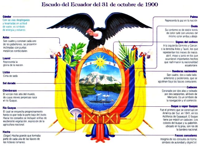 El 31 de octubre de 1900, el Congreso Nacional, dictó el decreto que reglamentó el uso de la bandera tricolor. La bandera nacional de la República del Ecuador es un paño rectangular formado por tres franjas horizontales, una superior amarilla de la mitad del alto y dos inferiores, azul y roja. Lleva obligatoriamente el escudo de armas del Ecuador en el centro.