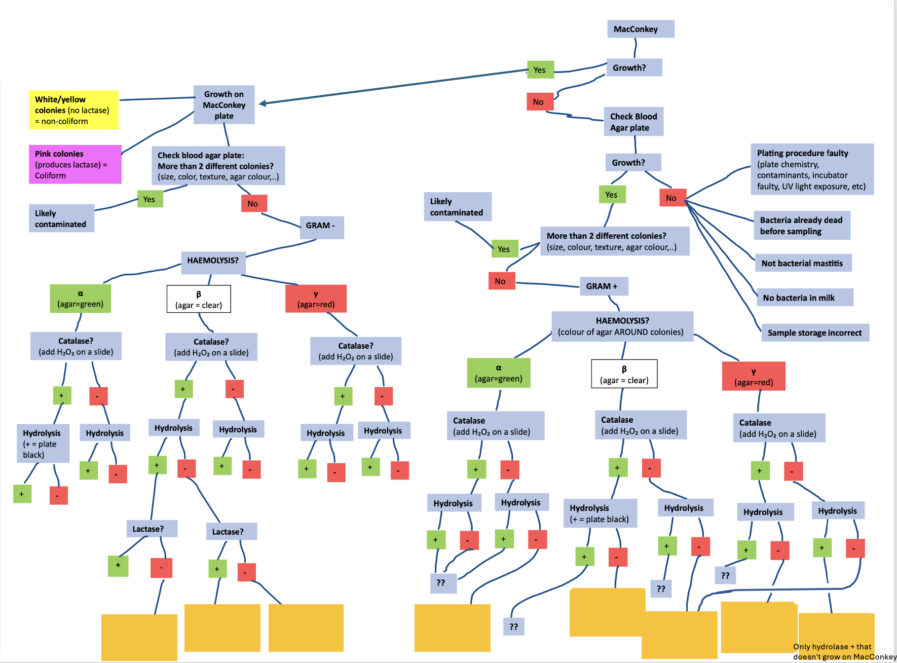 Flow Chart assessing milk sample cultures 2024Online version dont memorise - just know the culturing/testing characteristics of the 3 main mastitis etiologies (S. uberis, S. aureus, CNS) by Hope stack 1 Pseudomonas Aeruginosa 2 Serratia marcescens 3 Escherichia coli 4 Streptococcus dysgalactiae 5 Staphylococcus aureus (important) 6 Streptococcus agalactiae 7 CNS- Coagulase Negative Staphylococcus (important) 8 Streptococcus uberis (important)
