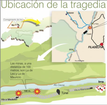 Identificar riesgos ambientaleOnline version Esta actividad pretende que el e-estudiante reconozca los factores de riesgo que se debieron tener en cuenta para evitar una tragedia minera como la de Río Sucio (Caldas) a partir del mapa tomado del periódico La Patria (Mayo 15) tomado de: http://www.lapatria.com/sucesos/empezo-el-rescate-de-cuerpos-en-minas-de-riosucio-193982 by Uliana Molano Valdés 1 Cauce activo del río Cauca 2 Lecho mayor que es plano de desbordamiento 3 Obras de infraestructura que afectan la zona 4 Casco urbano 5 Actividad minera de excavación a menos de 10m del cauce activo 6 Energía eléctrica ilegal 7 Creciente súbita