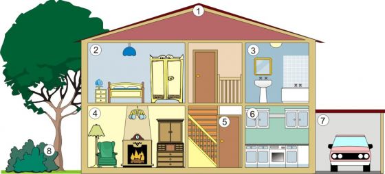 Places in the cityOnline version Match the places to the pictures by George Narväez 1 Roof 2 Bedroom 3 Bathroom 4 Living room 5 Kitchen