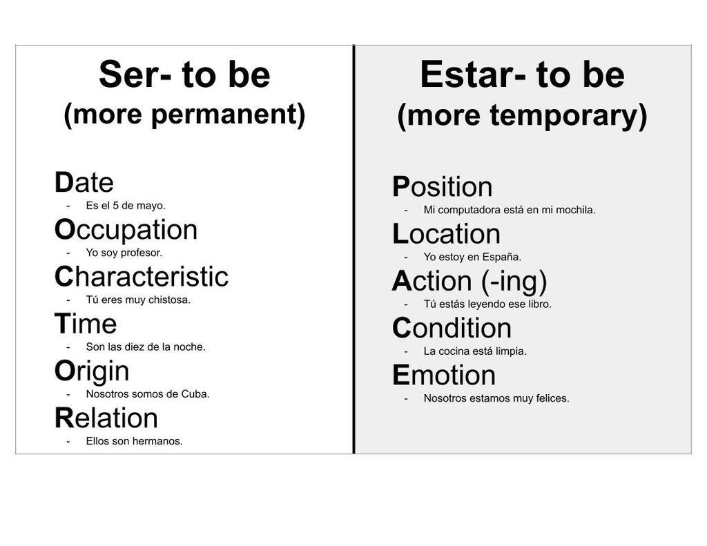 Ser v Estar ReasonsOnline version Ser v Estar Reasons by Nate Wolf 1 All of the questions on this quiz will have TWO correct answers. You need to listen to all four sentences and decide which two are correct. Use the image on each question to find the correct answers. Practice selecting two different answers at a time here by clicking on the two monkey images and then clicking 'Ok.' 🙉 🙉 ✅ Choose one or more answers a 🙉 b 🙉 c 💩 d 🍔 2 Two of the sentences below are correct and two are incorrect! Choose the two that are correct. Choose one or more answers a Yo estoy en la cocina 🍳 b Yo soy chef 🧑🍳 c Yo soy en la cocina 🍳 d Yo estoy chef 🧑🍳 3 Two of the sentences below are correct and two are incorrect! Choose the two that are correct. Choose one or more answers a Yo estoy muy feliz hoy b Yo soy chistoso c Yo soy muy feliz hoy d Yo estoy chistoso 4 Two of the sentences below are correct and two are incorrect! Choose the two that are correct. Choose one or more answers a Hoy es el 17 de julio 📆 b Tú eres de México 🇲🇽 c Hoy está el 17 de julio 📆 d Tú estás de México 🇲🇽 5 Two of the sentences below are correct and two are incorrect! Choose the two that are correct. Choose one or more answers a Yo estoy muy tranquilo hoy. 🧘 b Nosotros estamos en la escuela. 🏫 c Yo soy muy tranquilo hoy. 🧘 d Nosotros somos en la escuela. 🏫 6 Two of the sentences below are correct and two are incorrect! Choose the two that are correct. Choose one or more answers a Ella está enferma hoy. 🤒 b Los libros están sobre la mesa. 📚 c Ella es enferma hoy. 🤒 d Los libros son sobre la mesa. 📚 7 Two of the sentences below are correct and two are incorrect! Choose the two that are correct. Choose one or more answers a La ventana está abierta 🪟 b Nosotros somos amigos. 👫 c La ventana es abierta 🪟 d Nosotros estamos amigos. 👫 8 Two of the sentences below are correct and two are incorrect! Choose the two that are correct. Choose one or more answers a La casa es blanca 🏠 b Ella es alta 📏 c La casa está blanca 🏠 d Ella está alta 📏 9 Two of the sentences below are correct and two are incorrect! Choose the two that are correct. Choose one or more answers a El profesor es interesante. 🎓 b Ella está cansada 😴 c El profesor está interesante. 🎓 d Ella es cansada 😴 10 Two of the sentences below are correct and two are incorrect! Choose the two that are correct. Choose one or more answers a Ustedes son de Nueva York 🏙️ b Las chicas están en la playa 🏝️ c Ustedes están de Nueva York 🏙️ d Las chicas son en la playa 🏝️