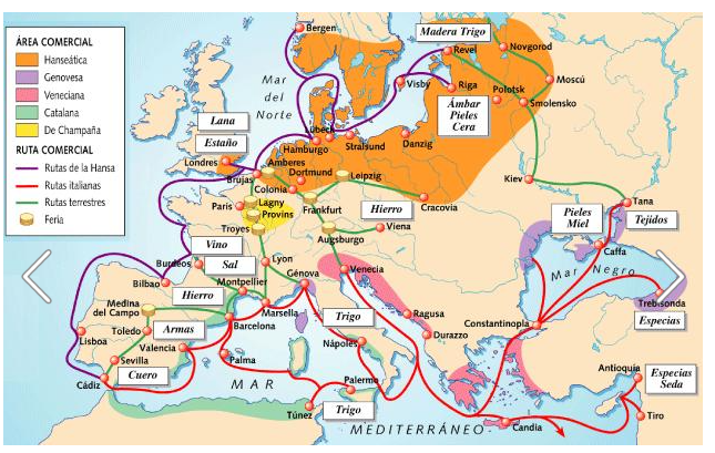 Las rutas comerciales de la Baja Edad MediaOnline version Rutas comerciales, productos y localización de las ferias. by Maribel De Souza Silvera 1 Venecia 2 Feria de Champaña- Francia 3 Génova 4 Frankfurt