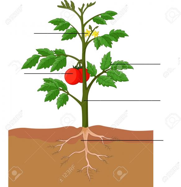 TomatoOnline version Put the word in the correct place. by María Fernanda Pulero 1 Flower 2 Leaf 3 Fruit 4 Stem 5 Root