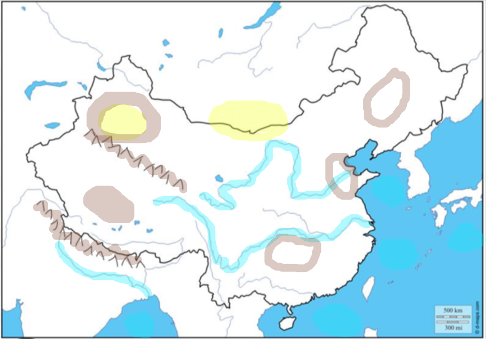 East Asia Physical Features MapOnline version Map Practice by Ali Ryan 1 South China Sea 2 Bay of Bengal 3 Ganges River 4 East China Sea 5 Sea of Japan 6 Yellow Sea 7 Pacific Ocean 8 Huang He (Yellow) River 9 Chang Jiang (Yangtze) River 10 Taklimakan Desert 11 Tarim Basin 12 Gobi Desert 13 Himalayas 14 Plateau of Tibet 15 Kunlun Shan Mountains 16 Northeastern Plain 17 North China Plain 18 Chang Jiang Basin