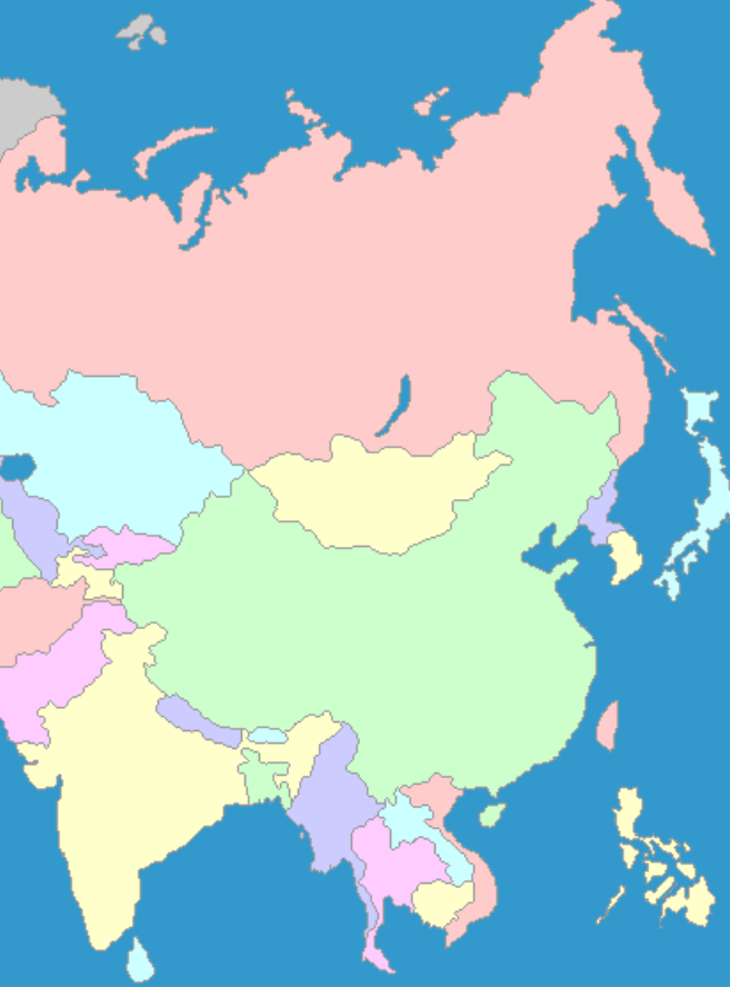 East Asia Modern Political MapOnline version Map Practice by Ali Ryan 1 Japan 2 China 3 North Korea 4 South Korea 5 India 6 Pakistan 7 Afghanistan 8 Mongolia 9 Myanmar 10 Bangladesh 11 Nepal 12 Thailand 13 Laos 14 Taiwan 15 Russia 16 Vietnam 17 Philippines 18 Cambodia 19 Sri Lanka