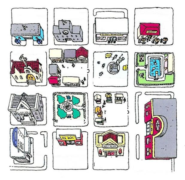 The cityOnline version Learn the parts of the city by Miguel Gutiérrez 1 Post office 2 Bank 3 Shopping center 4 Church 5 Cinema 6 Park 7 Square 8 Pool 9 Restaurant