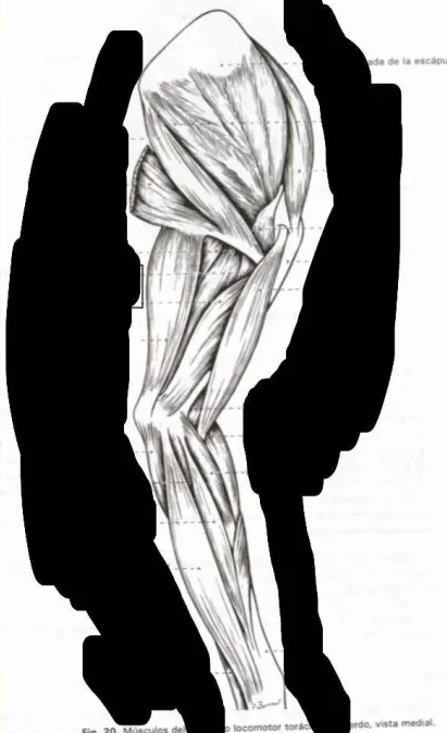Músculos intrínsecos mediales apendicular torácicoOnline version Apendicular medial by _ bruh 1 Subescapular 2 Redondo mayor 3 Coracobraquial 4 Triceps braquial porcion medial 5 Tensor de la fascia del antebrazo 6 Bicep braquial 7 Extensor carporradial 8 Pronador redondo 9 Flexor radial del carpo 10 Flexor digital superficial 11 Flexor ulnar del carpo