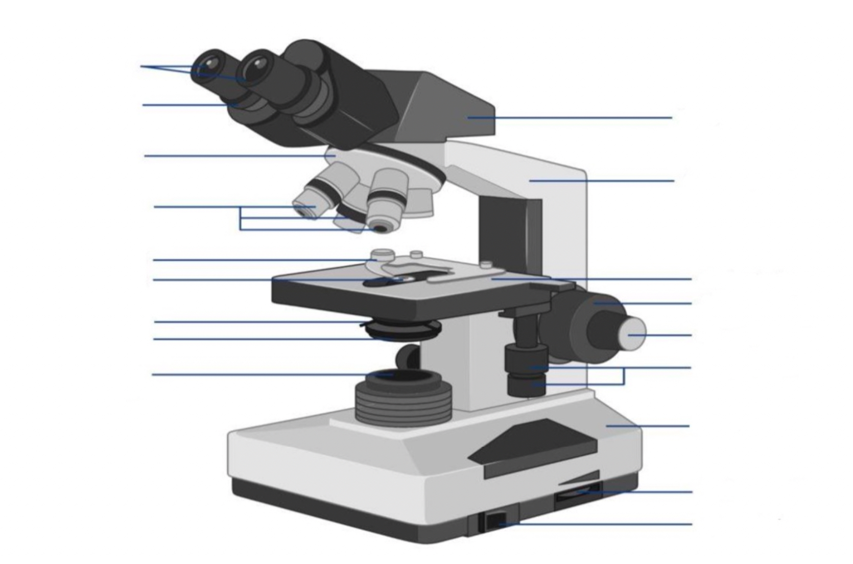 Microscope PartsOnline version Microscope Parts by Rina 1 Diaphragm 2 Mechanical stage 3 Condenser 4 Stage controls 5 Diopter adjustment 6 Ocular lens 7 Illuminator (Light Source) 8 Objective lens 9 Nose piece 10 Aperture 11 Head 12 Base 13 Brightness adjustment 14 Arm (Carrying handle) 15 Stage clip 16 Light switch 17 Fine adjustment 18 Coarse adjustment